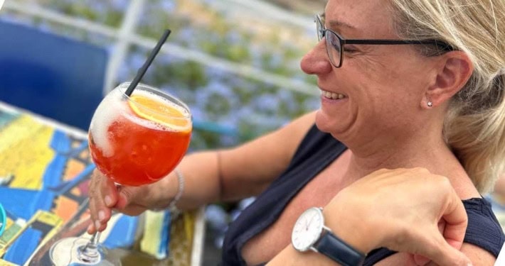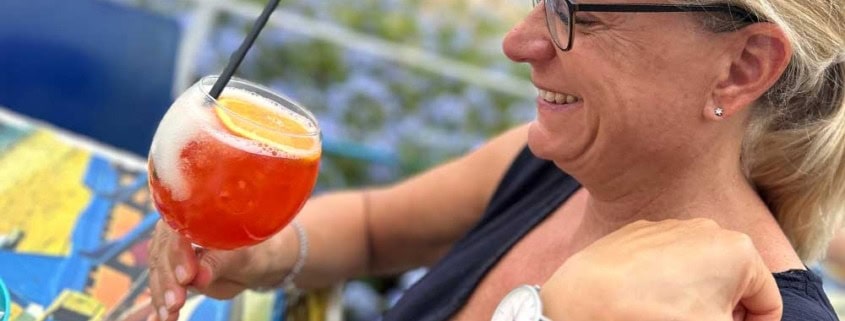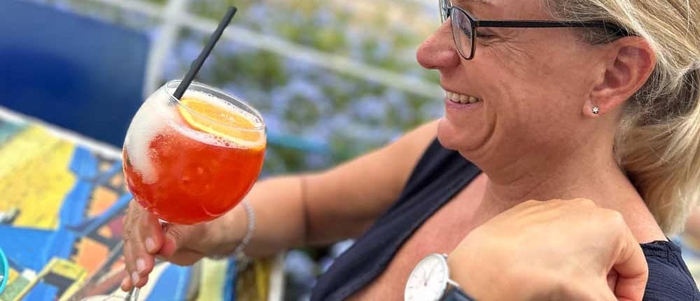 Gin, Aperol, Campari und Orangensaft in einen Cocktailshaker mit Eis geben. Kräftig shaken. - Granita vorbereiten