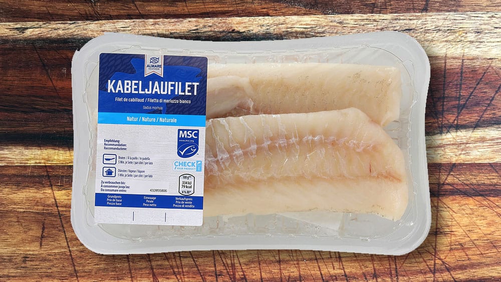 - 2–4 Kabeljaufilets (ca. 150 g je Stück)