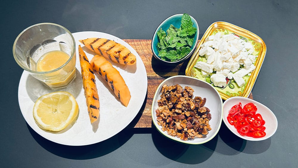 Gegrillte Melone darauf drappieren