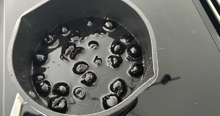 Schattenmorellen über einem Sieb abgießen, den Saft auffangen.