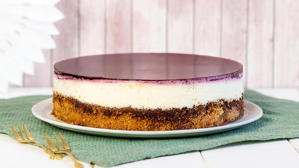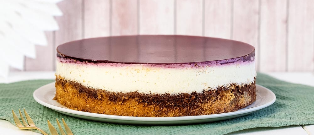 Einen Tortenring oder Springformrand um den Kuchen legen. - Quark mit