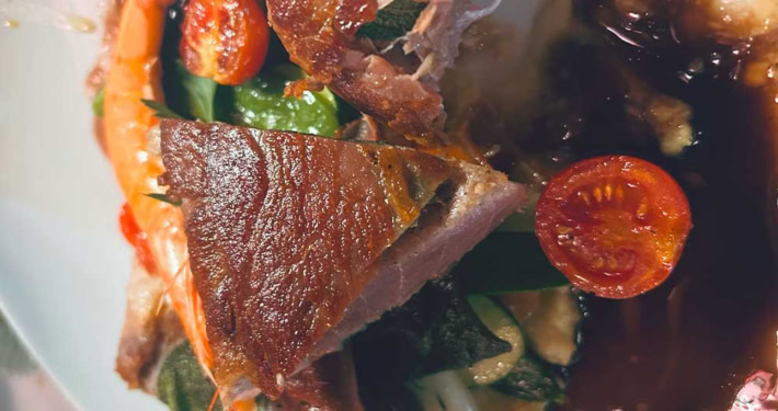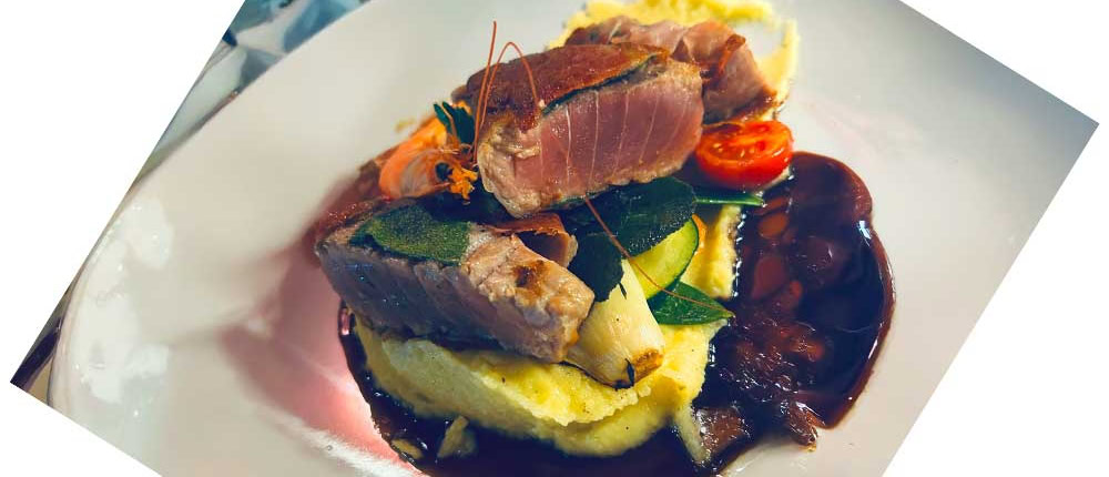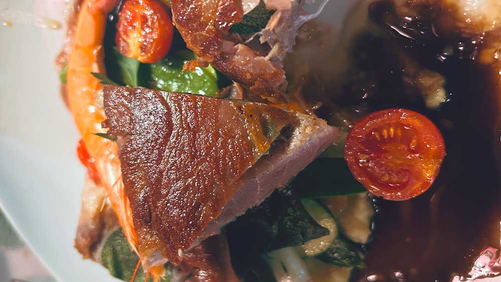 Ein mediterran-italienisches Hauptgericht, das elegant und harmonisch wirkt – kräftig, frisch und mit einer raffinierten Balance aus salzig (Schinken), zart (Thunfisch), bitter (Chicorée) und süß-sauer (Balsamico).