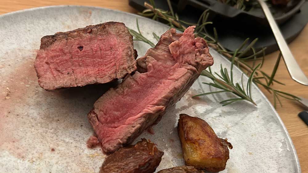 Kurzgebraten heißt wirklich kurz. Je cm Dicke, rechne eine Minute pro Seite. Simple, oder?