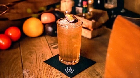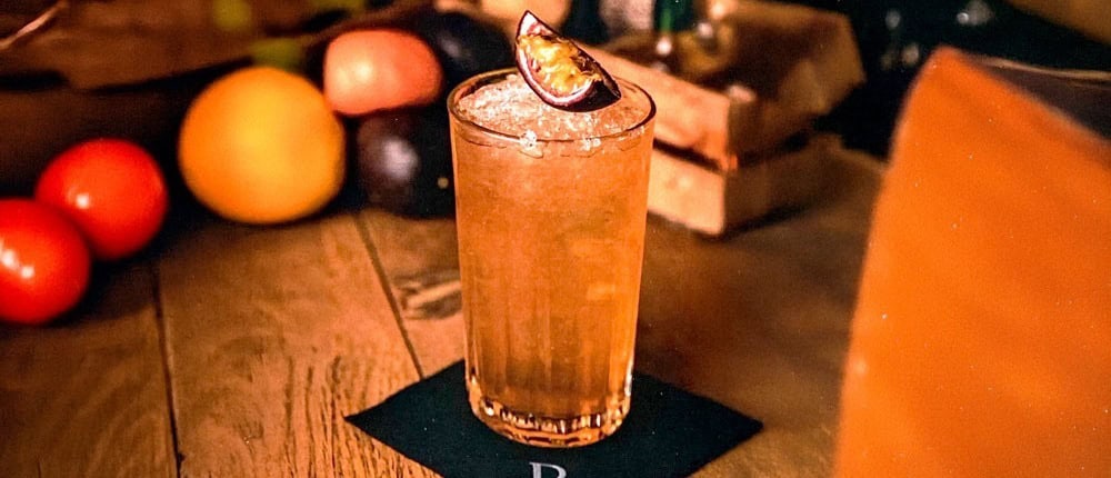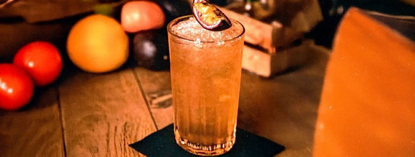 - Zum Schuss mit Crushed Ice füllen und mit einem Viertel Passionsfrucht garnieren