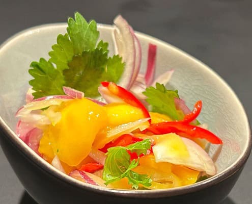 Mango und Kreuzkümmel-Joghurt-Dipp