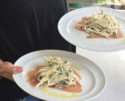 lecker zu Rucola mit braunen Champignons,Tomaten und frisch gehobeltem Parmesan