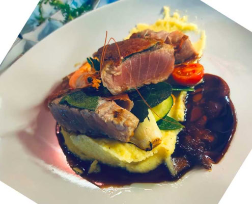 Saltimbocca vom Thunfischsteak mit Balsamico-Reduktion